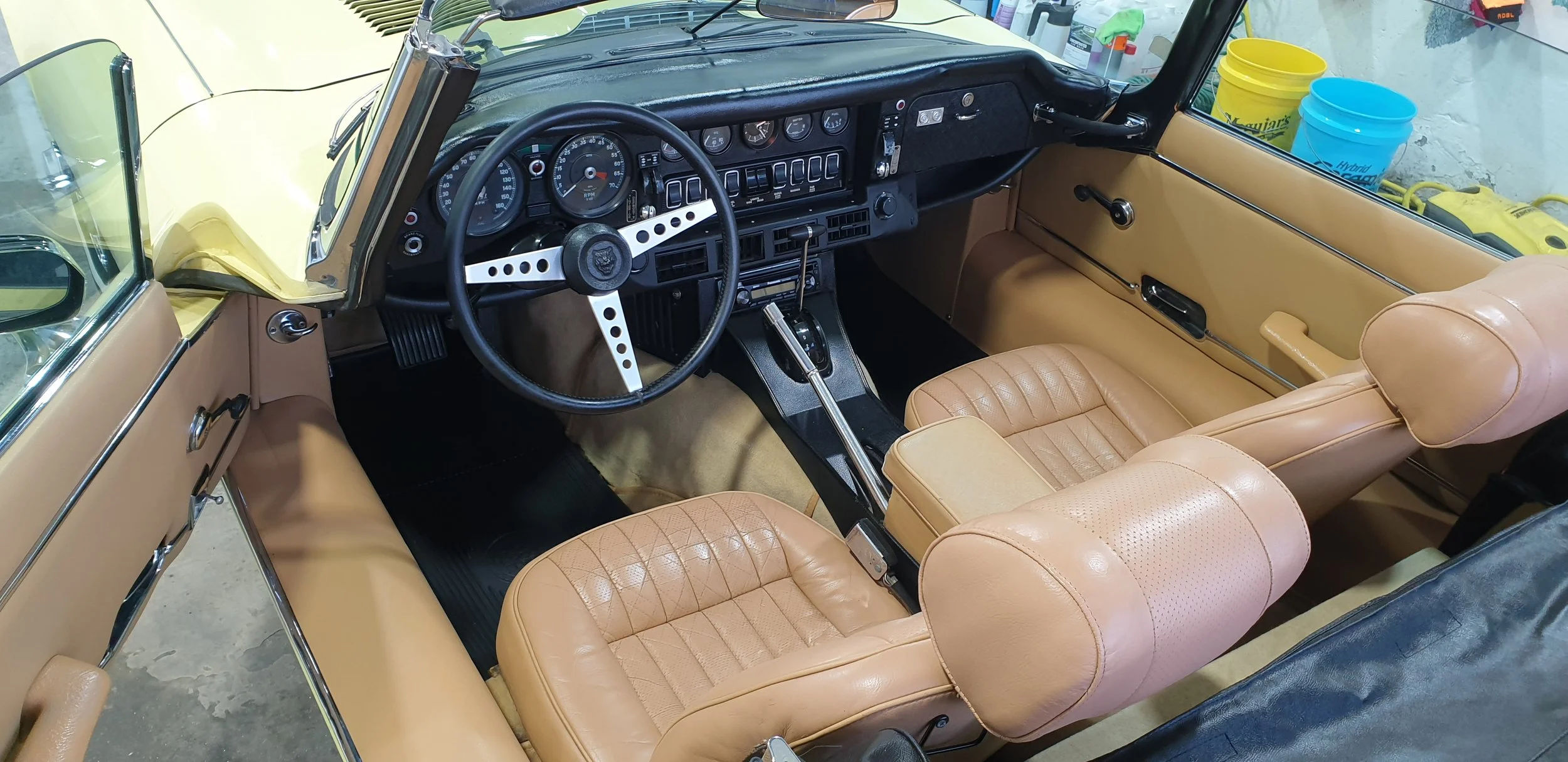 Full interior. Moqueta + piel. Motor. Capota + cubrecapota. Maletero. Pulir cromados........ todo lo que se ha podido hacer en 10 horas x2 personas...